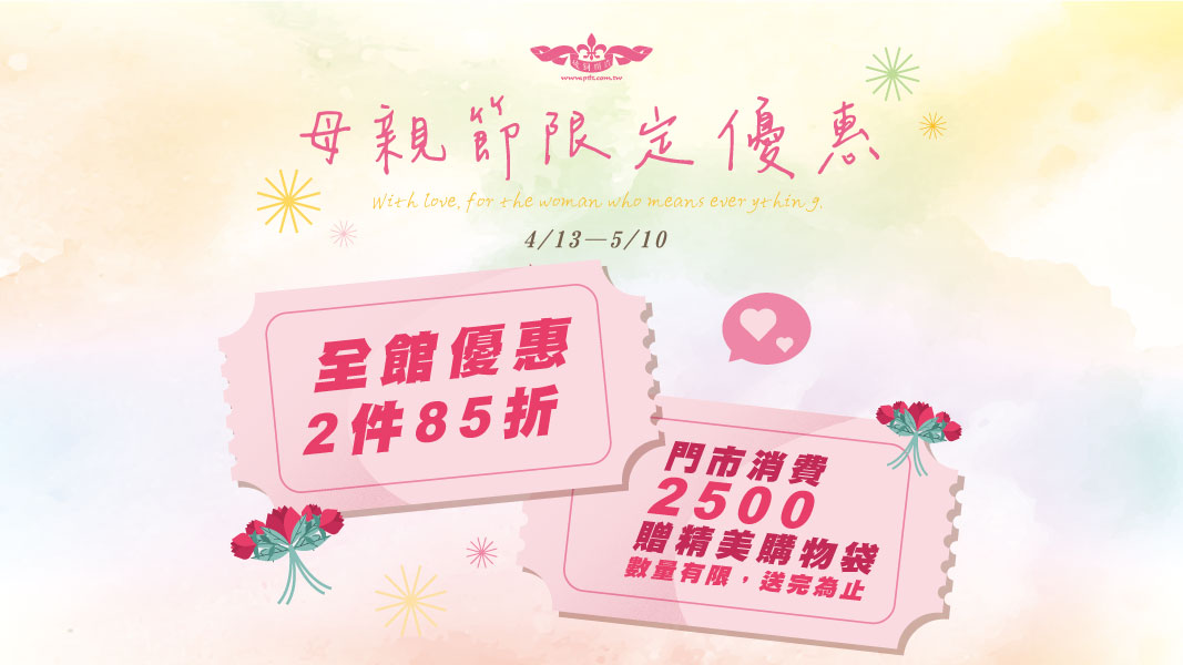 母親節全館2件85折